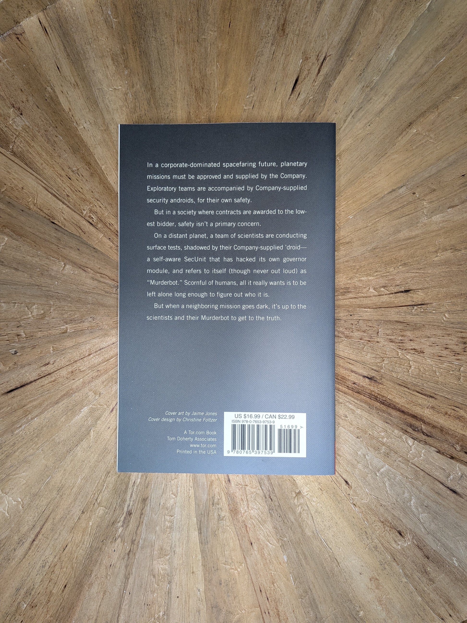 In a corporate-dominated space-faring future, planetary missions must be approved and supplied by the Company. For their own safety, exploratory teams are accompanied by Company-supplied security androids. But in a society where contracts are awarded to the lowest bidder, safety isn't a primary concern.On a distant planet, a team of scientists is conducting surface tests, shadowed by their Company-supplied 'droid--a self-aware SecUnit that has hacked its own governor module and refers to itself (though never out loud) as "Murderbot." Scornful of humans, Murderbot wants is to be left alone long enough to figure out who it is, but when a neighboring mission goes dark, it's up to the scientists and Murderbot to get to the truth.
